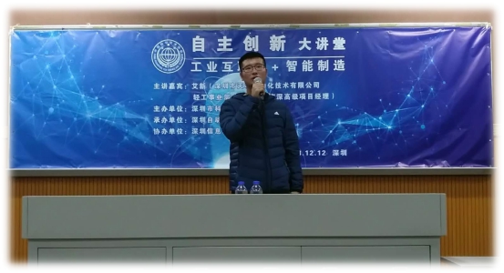 2018年12月12日下午,深圳市天圳自动化技术有限公司轻工事业副总经理艾新为中德学院学生做了题为“工业互联网+智能制造”的讲座。