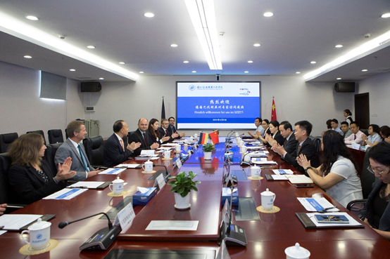随后,中德学院负责人作了中德学院工作进展报告,详细回顾了中德学院自正式挂牌两周年、全面运行一周年以来中德学院在课程体系、师资队伍、实训基地、教科研、学生培养、质量保证体系等各方面取得的进展,并对学院未来做了规划与展望。该总结报告得到了德方的一致认可。布罗伊校长感谢学校上下对中德学院建设给予的大力支持与辛勤付出,表示中德学院自2017年创建至今,已取得阶段性成果。